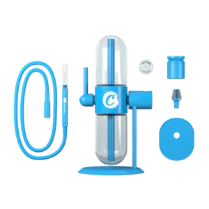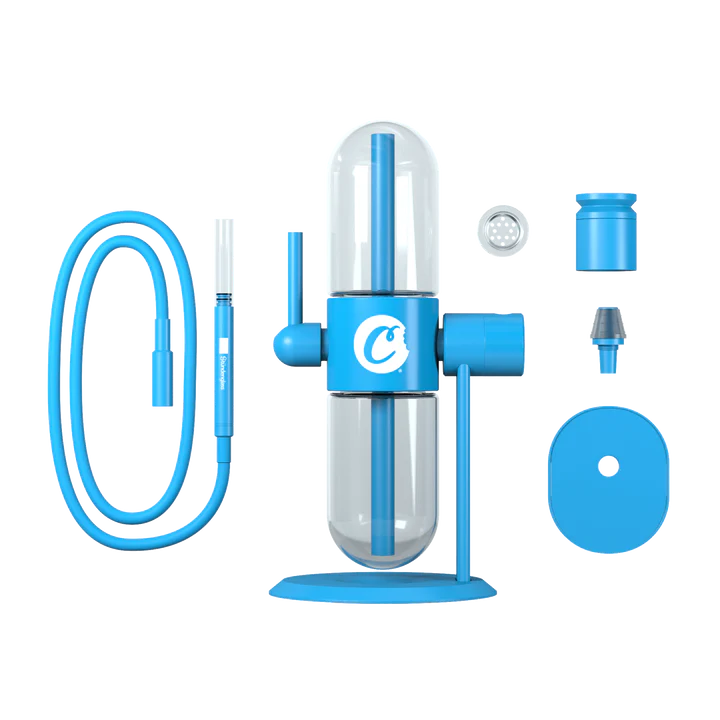 Totalmente personalizado y construido con materiales de la más alta calidad, como globos de vidrio de borosilicato y aluminio anodizado de calidad aeronáutica, el infusor por gravedad Cookies X Stündenglass ofrece una experiencia inmersiva con caladas suaves, consistentes y vaporosas.